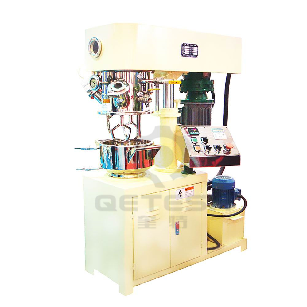 雙行星混合機的攪拌槳葉,在公轉的同時(shí)也自轉,使罐體內物料上下及四周循環(huán)運動(dòng),從而可在很短時(shí)間內達到混合(混煉)效果。罐體內壁為大型立車(chē)精加工,再經(jīng)大型拋光機自動(dòng)拋光,確保行星箱上的活動(dòng)刮刀在旋轉時(shí),把罐體內壁上的物料完全刮掉。該機特別適合從粉體到高黏度、高密度的物料溶解、混合、混煉、反應工藝。廣泛應用于電池、有機硅膠、油墨、染料、粘膠劑、高粘度涂料等化工產(chǎn)品。
